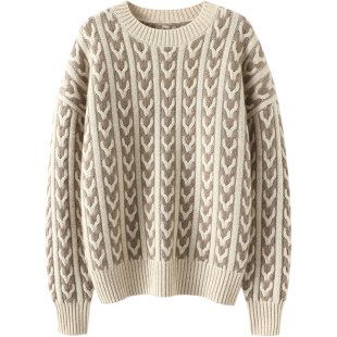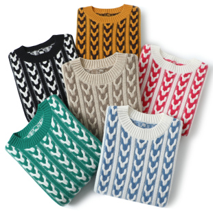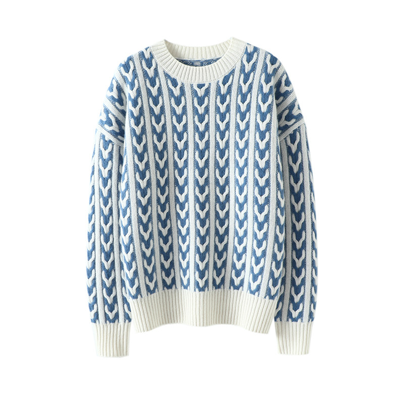 针织衫 单曲循环感 加厚条纹长袖 羊绒衫 圆领宽松羊绒毛衣 秋冬新款