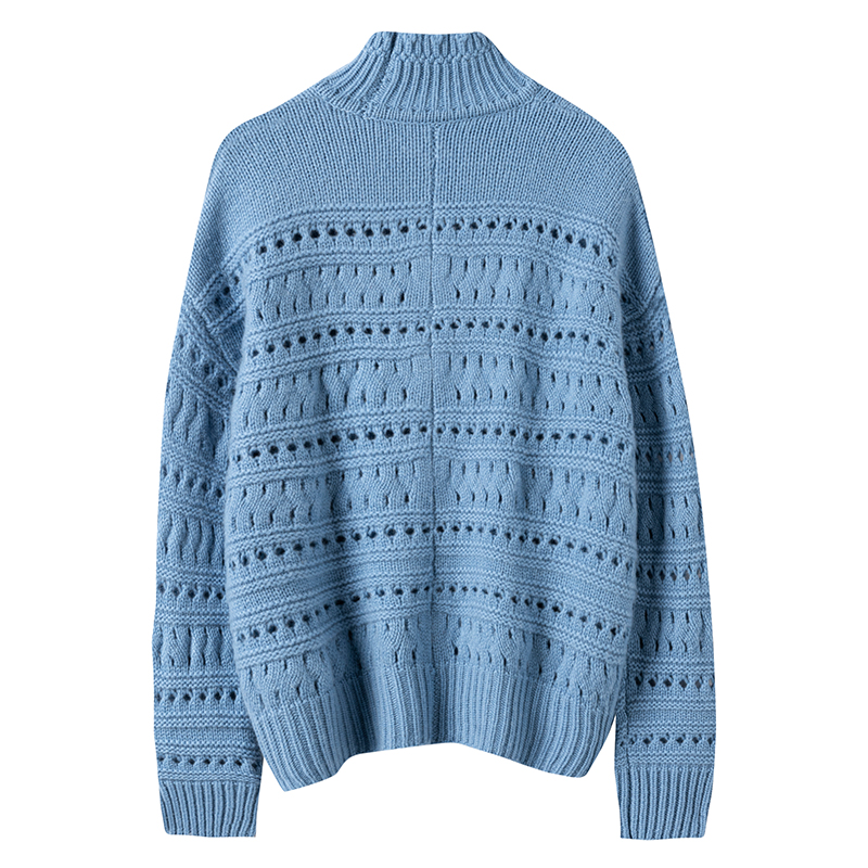 针织打底衫 高级感羊毛衫 女半高领宽松毛衣秋冬内搭加厚羊绒长袖