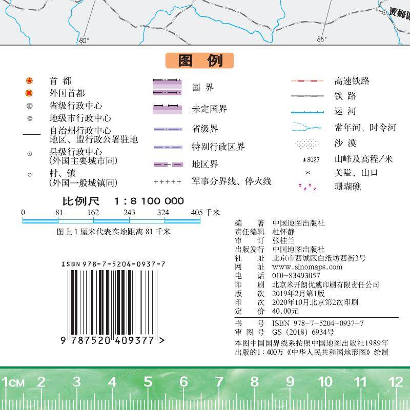 防水耐磨 社 对开 中国地图出版 加厚PVC地图 哑光磨砂质感 金博优图典学生用 翡翠版 75x54cm 中国政区 中国地图