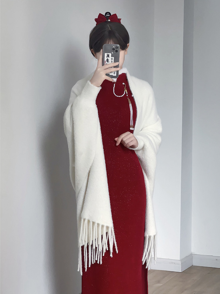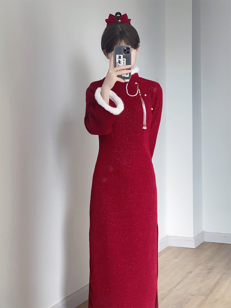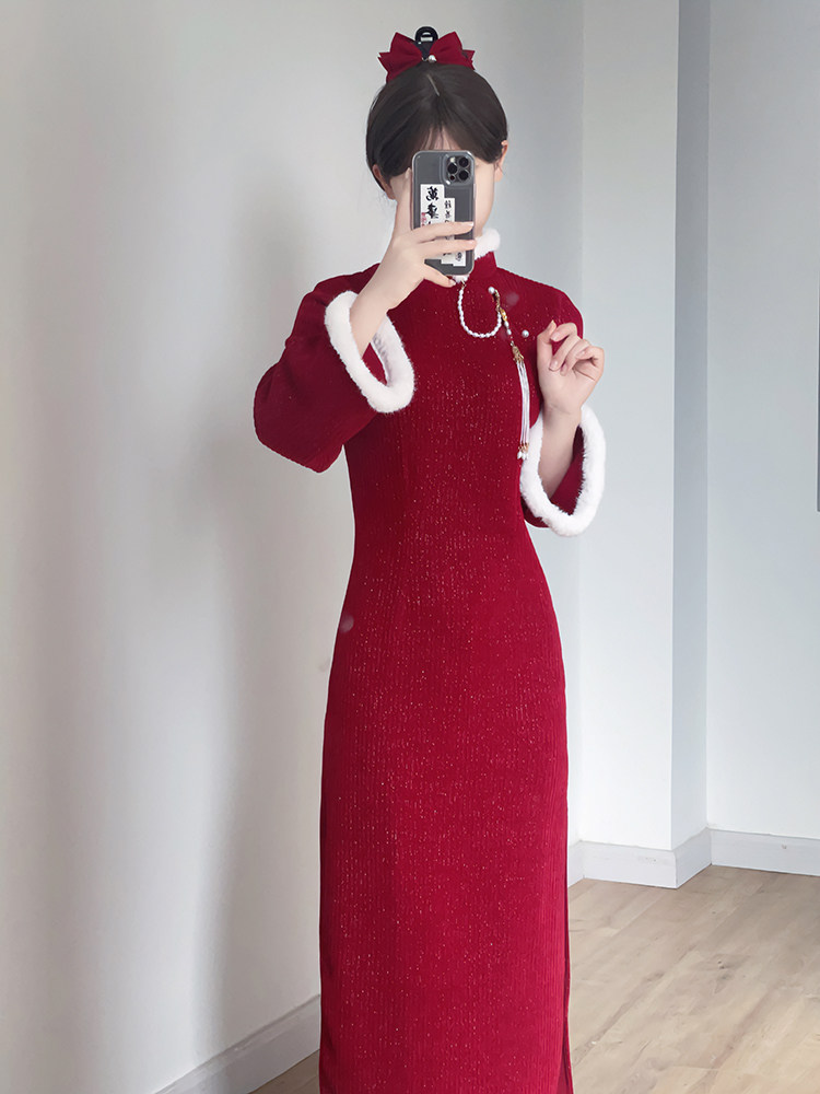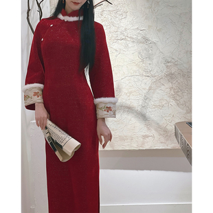 红夕旗袍红色新年拜年服加厚日常秋冬敬酒服新中式 女 订婚新娘冬季