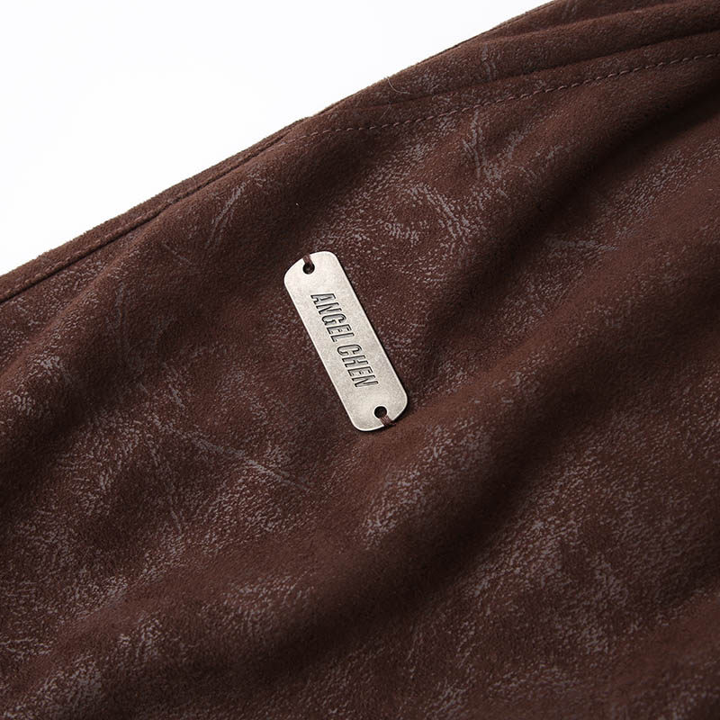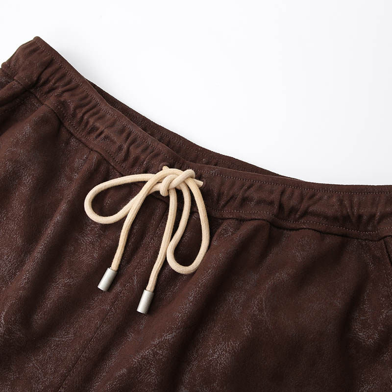棕褐麂皮绒logo短裤 AW23 CHEN陈安琪 ANGEL