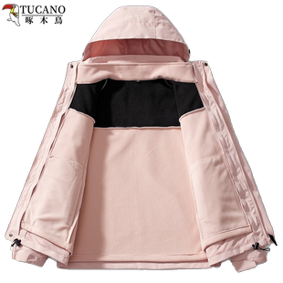 啄木鸟冲锋衣男女款 情侣外套 三合一可拆卸户外防风防水登山服大码