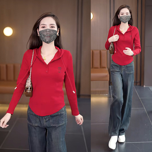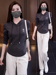 时尚 新款 修身 显瘦洋气上衣长袖 连帽卫衣女士薄款 T恤衫 2024春秋装