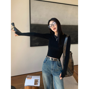 内搭修身 新款 秋冬新款 女半高领打底衫 显瘦黑色毛衣高级 针织羊绒衫