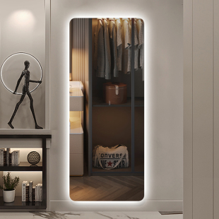 镜子贴墙防爆自粘带灯试衣穿衣镜家用壁挂轻奢玄关智能LED全身镜