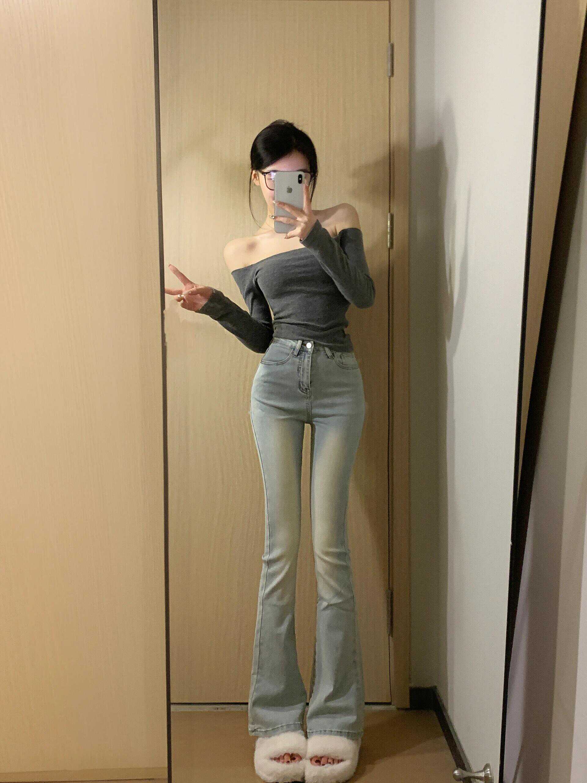 喇叭牛仔裤 热风女士喇叭牛仔裤 复古九分显高修身 新款 2025年秋季