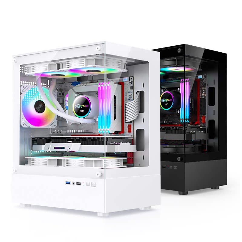 机matx玻璃全侧透明机箱 玄武MINI海景房电脑机箱台式 Sumtax 迅钛