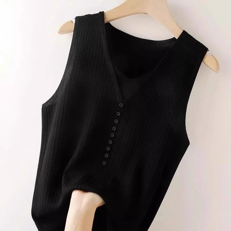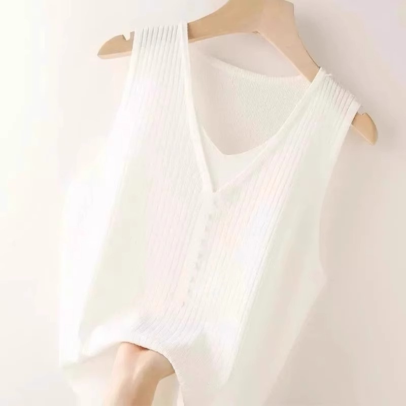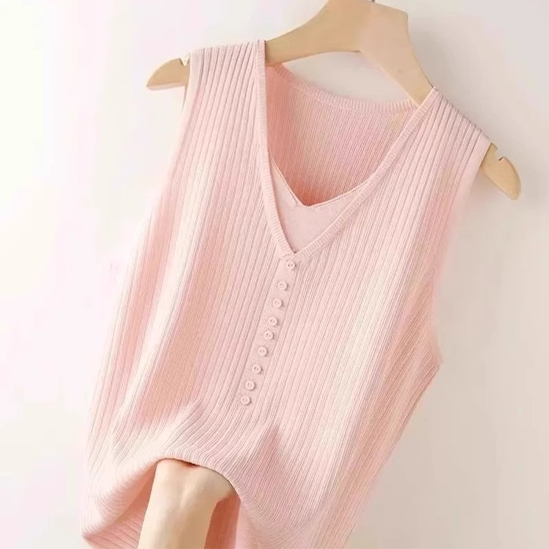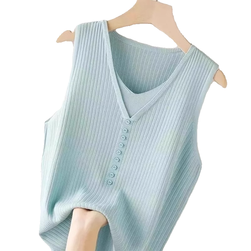 上衣 V领假两件无袖 奥莱清仓西装 内搭针织吊带背心女夏宽松打底衫