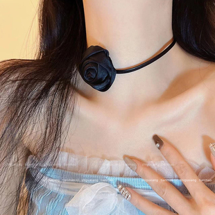 山茶花项链女choker项圈黑色玫瑰花锁骨链颈链素链脖子配饰系花
