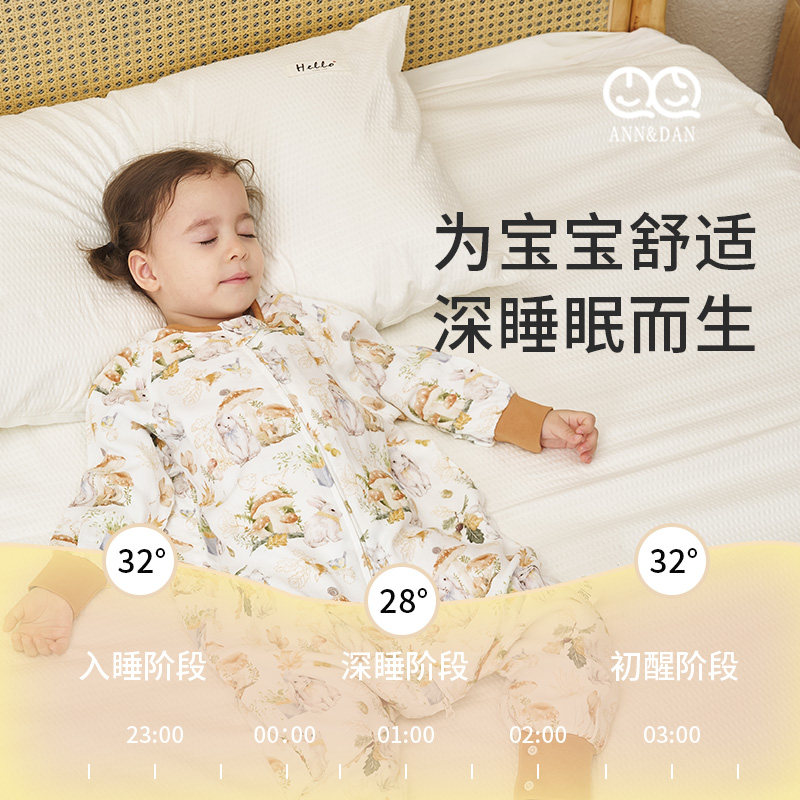 宝宝睡袋 薄款 安旦婴幼儿分腿睡袋儿童四层竹棉纱布睡袋四季 通用款