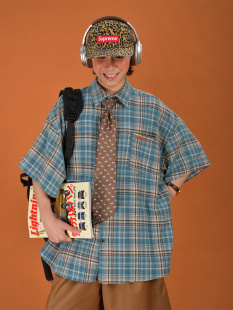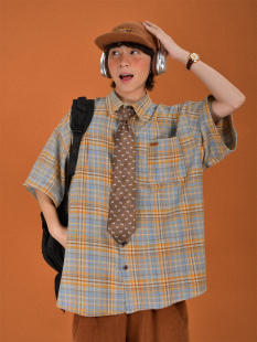 百搭宽松慵懒格纹半袖 C2自制 男女夏季 衬衫 衬衣 日系复古格子短袖