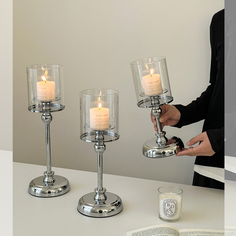 欧式 饰摆件烛光圣诞餐桌道具浪漫场景 轻奢复古玻璃烛台香薰蜡烛装