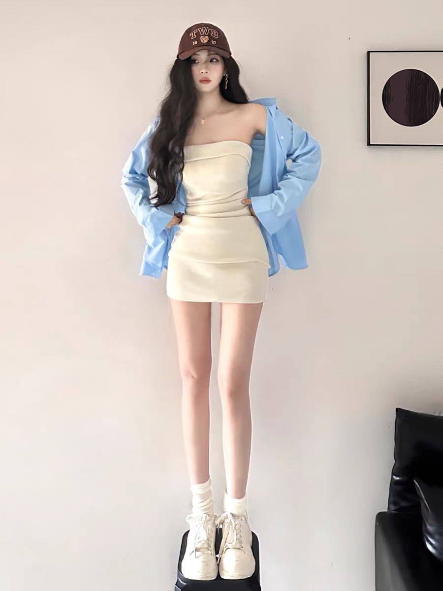 美式 辣妹抹胸性感气质挂脖连衣裙多种穿法高级感纯欲风显瘦包臀裙