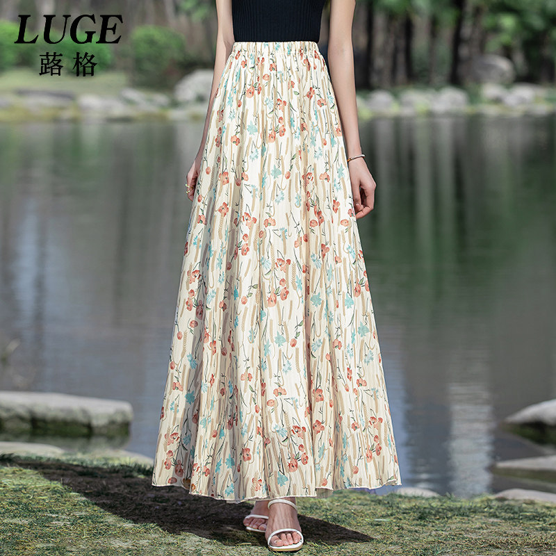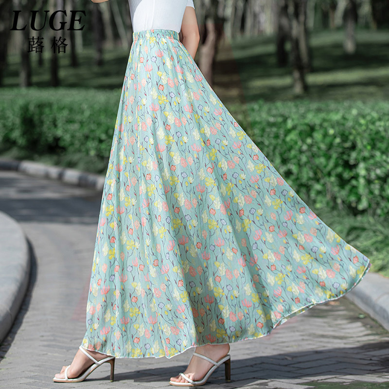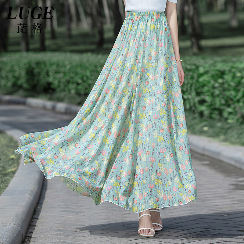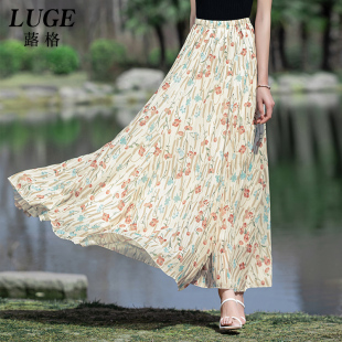 波西米亚半身长裙女2025夏季 碎花雪纺大摆裙子垂坠感a字伞裙 新款