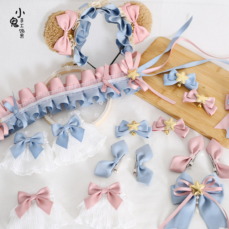 原创粉蓝洛丽塔发夹蝴蝶结发箍熊耳小熊马卡龙蕾丝Lolita发饰KC