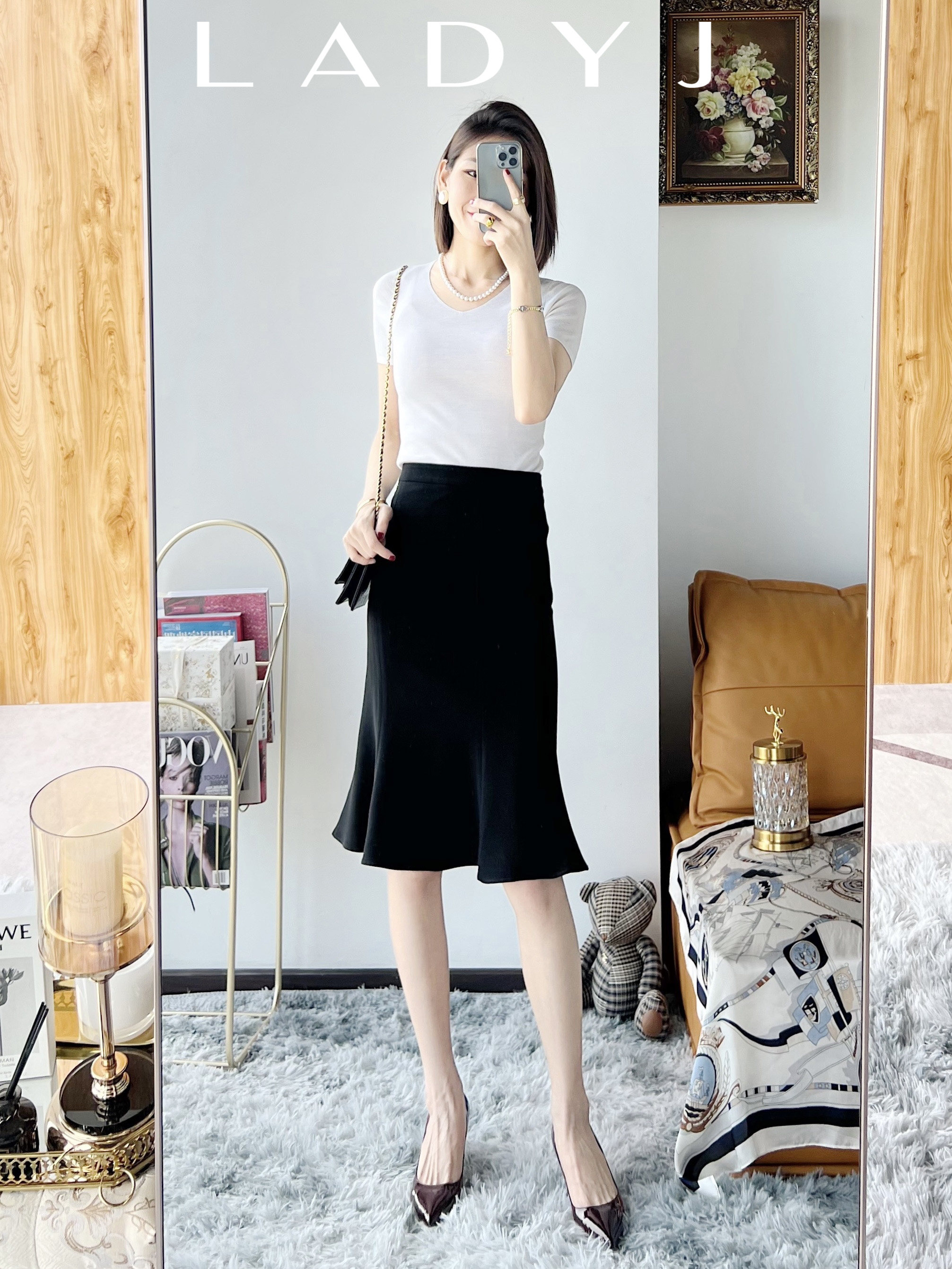 CE同源进口工艺醋酸简约优雅鱼尾抗皱半身裙夏 高奢 LadyJ 意式