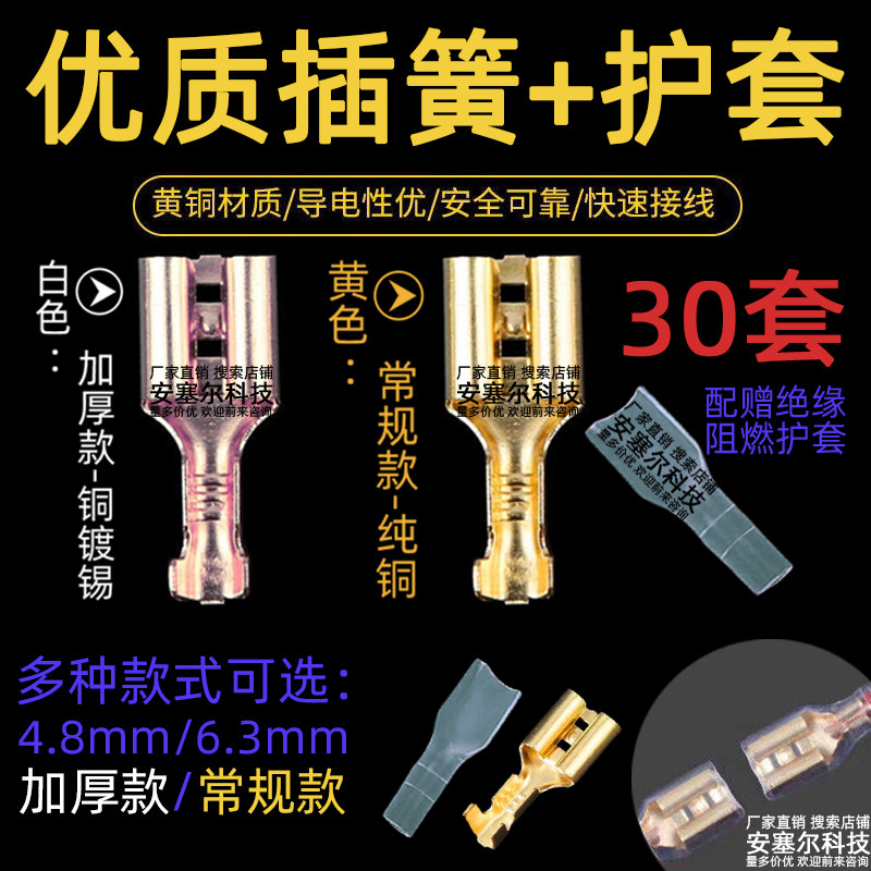 卡扣自锁插片 2.4接插件插拔式 插簧端子带锁冷压接线端子6.3 4.8