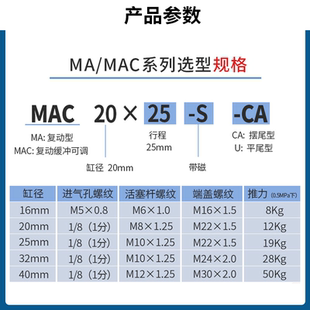 平尾系列MA 亚德客不锈钢气动气缸摆尾