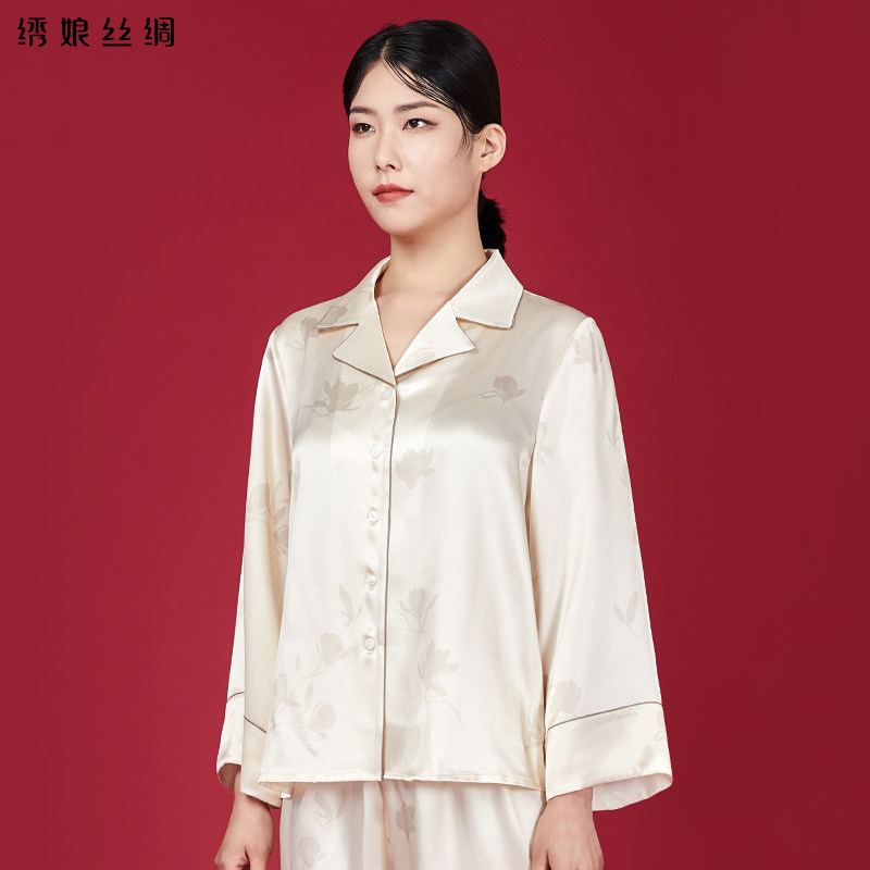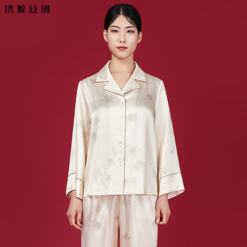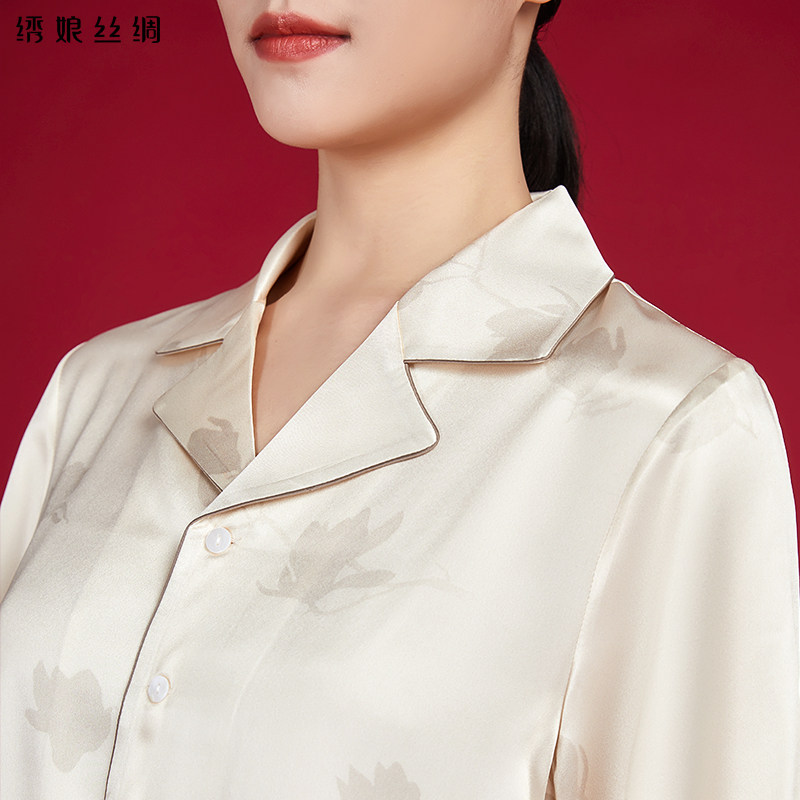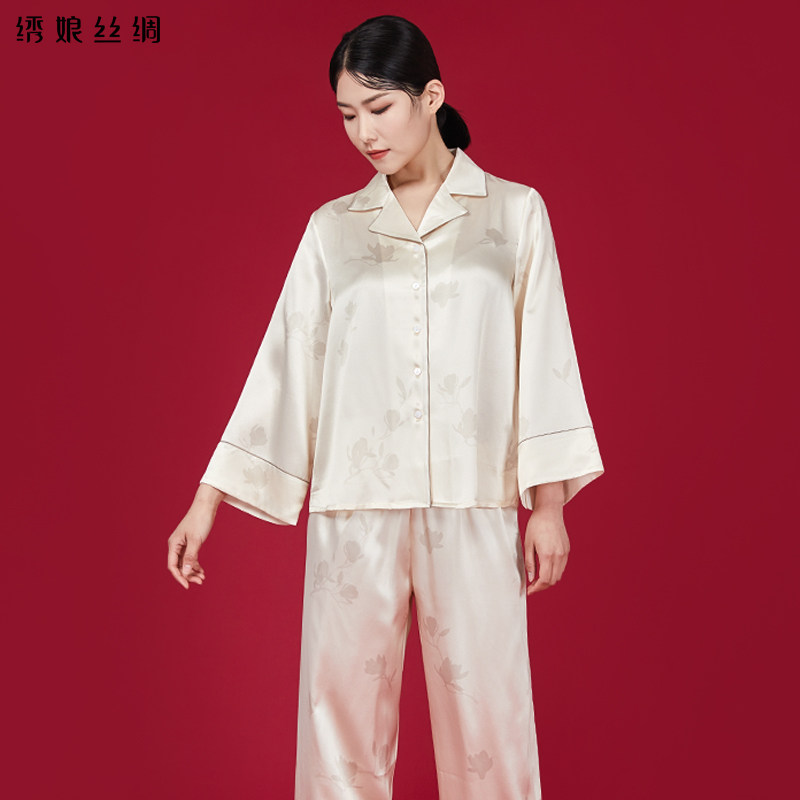 100%桑蚕丝女士春夏季 真丝睡衣女款 国风家居服 新款 绣娘丝绸礼盒装
