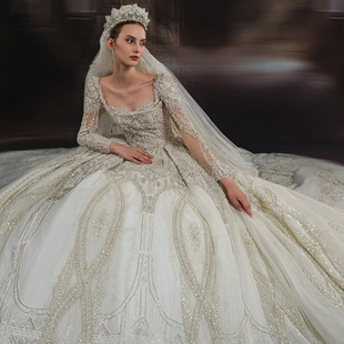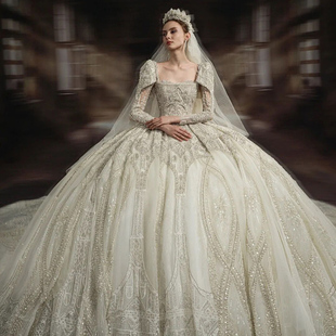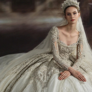 轻纱高级租借高端主 大码 租赁婚纱出租2025新款 26重工古董高定长袖