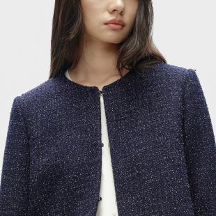 复古优雅正肩圆领短款 BLUE 新品 春季 女外套B256J0012 ERDOS