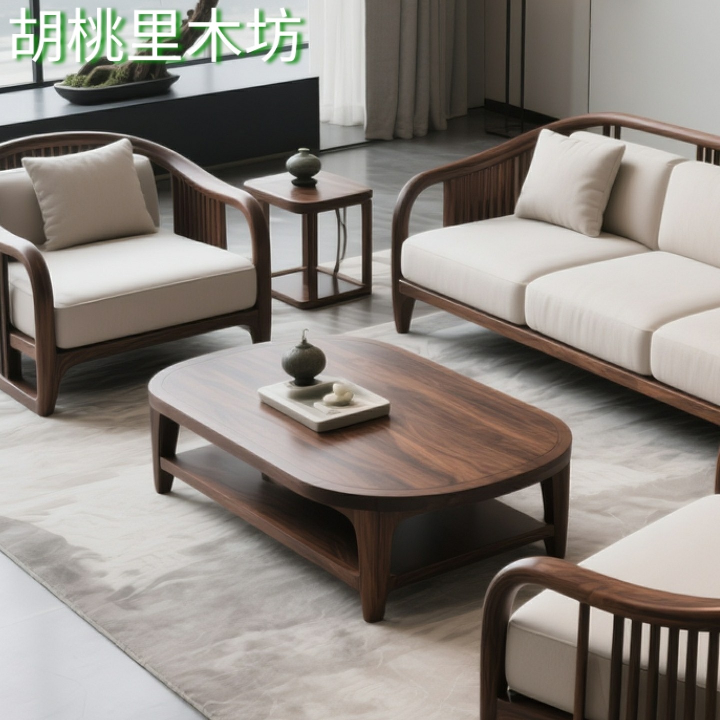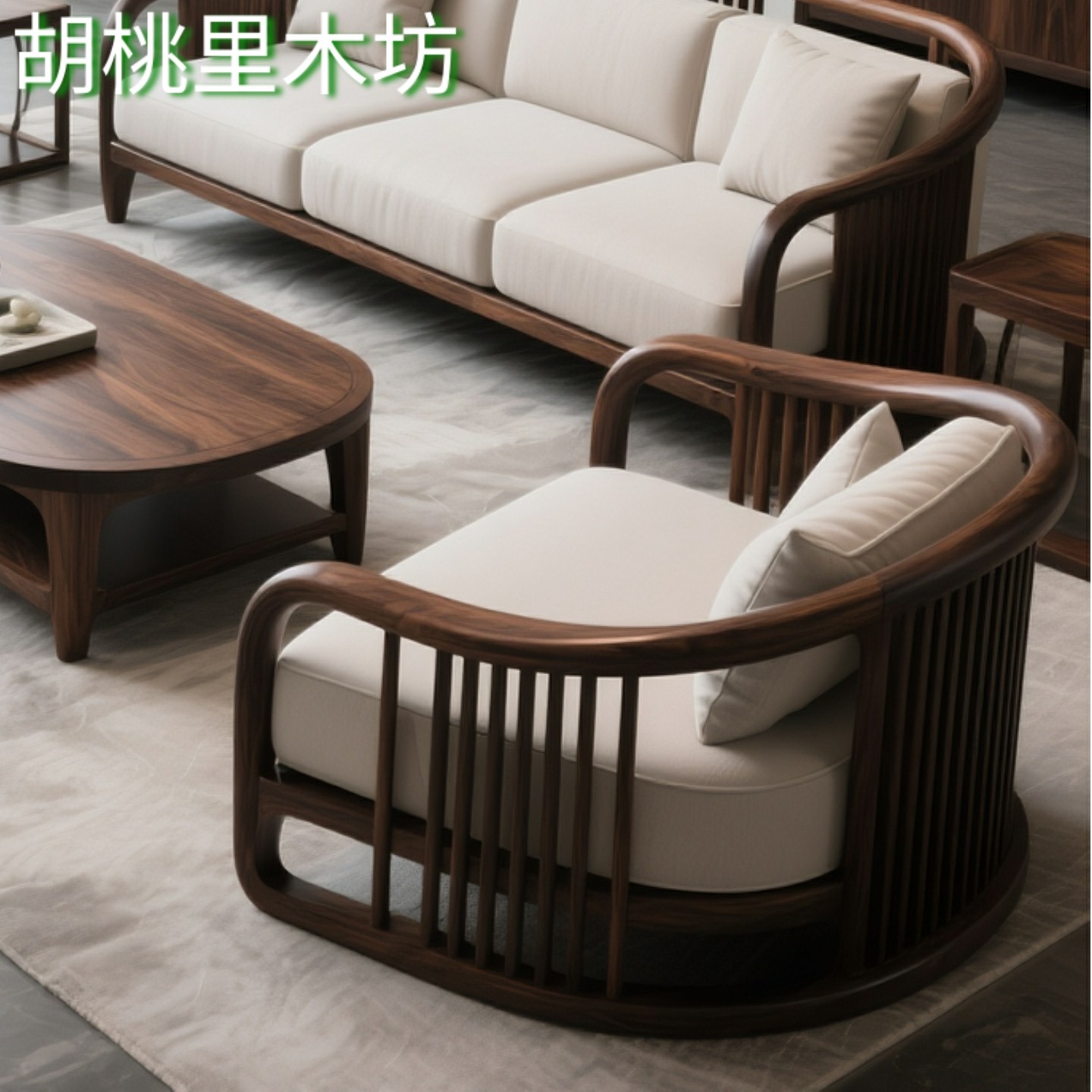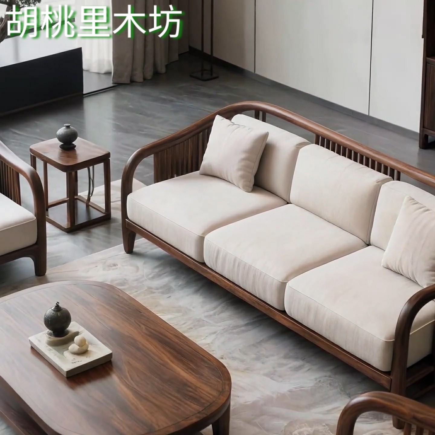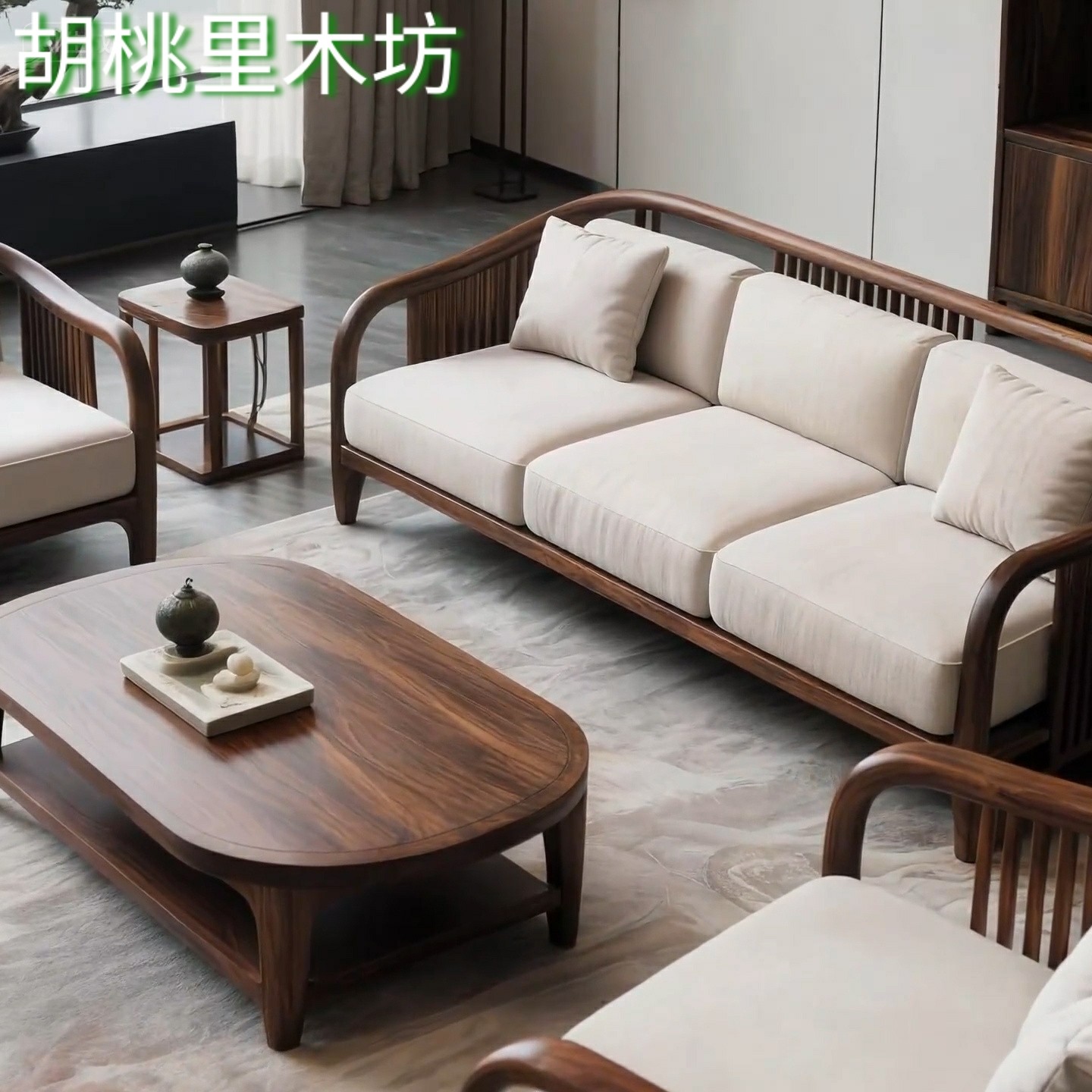 宋式 禅意民宿别墅轻奢客厅家具 美学北美黑胡桃实木沙发组合新中式