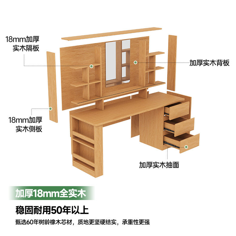 实木梳妆台斗柜一体现代卧室简约2025新款 床尾柜化妆桌书桌一体柜