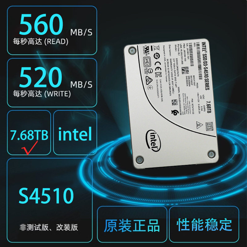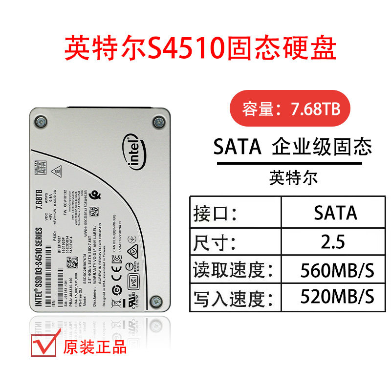 英特尔S4510 SATA固态硬盘SSDSC2KB076T8企业级固态 7.68TB