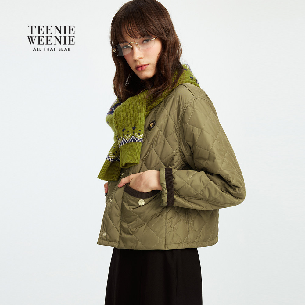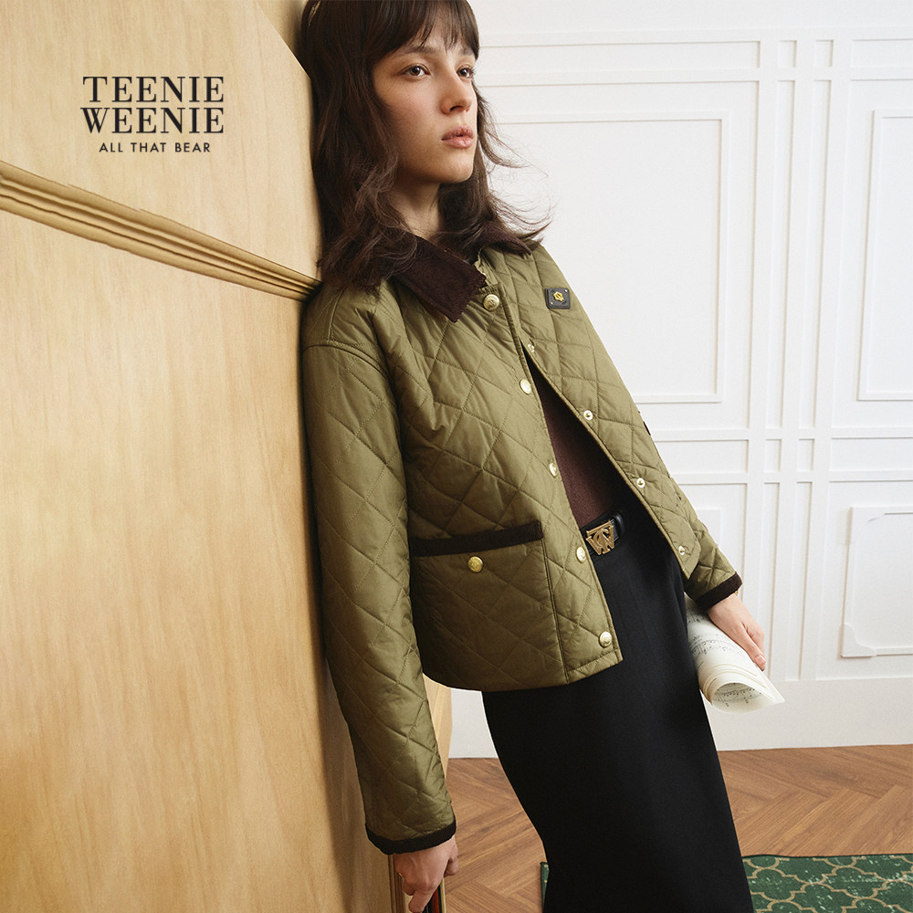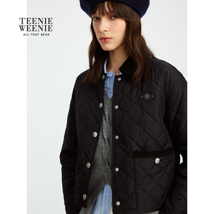 TeenieWeenie小熊女装 复古灯芯绒撞色绗缝翻领棉衣外套 棉服秋冬季