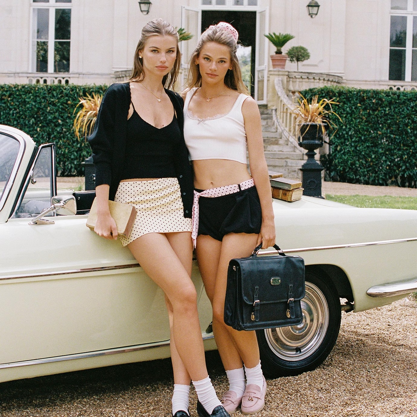 针织套装 25早秋时尚 波点半裙淡黄色A字防走光 Jacqueline Nana