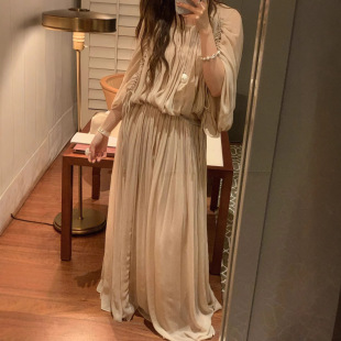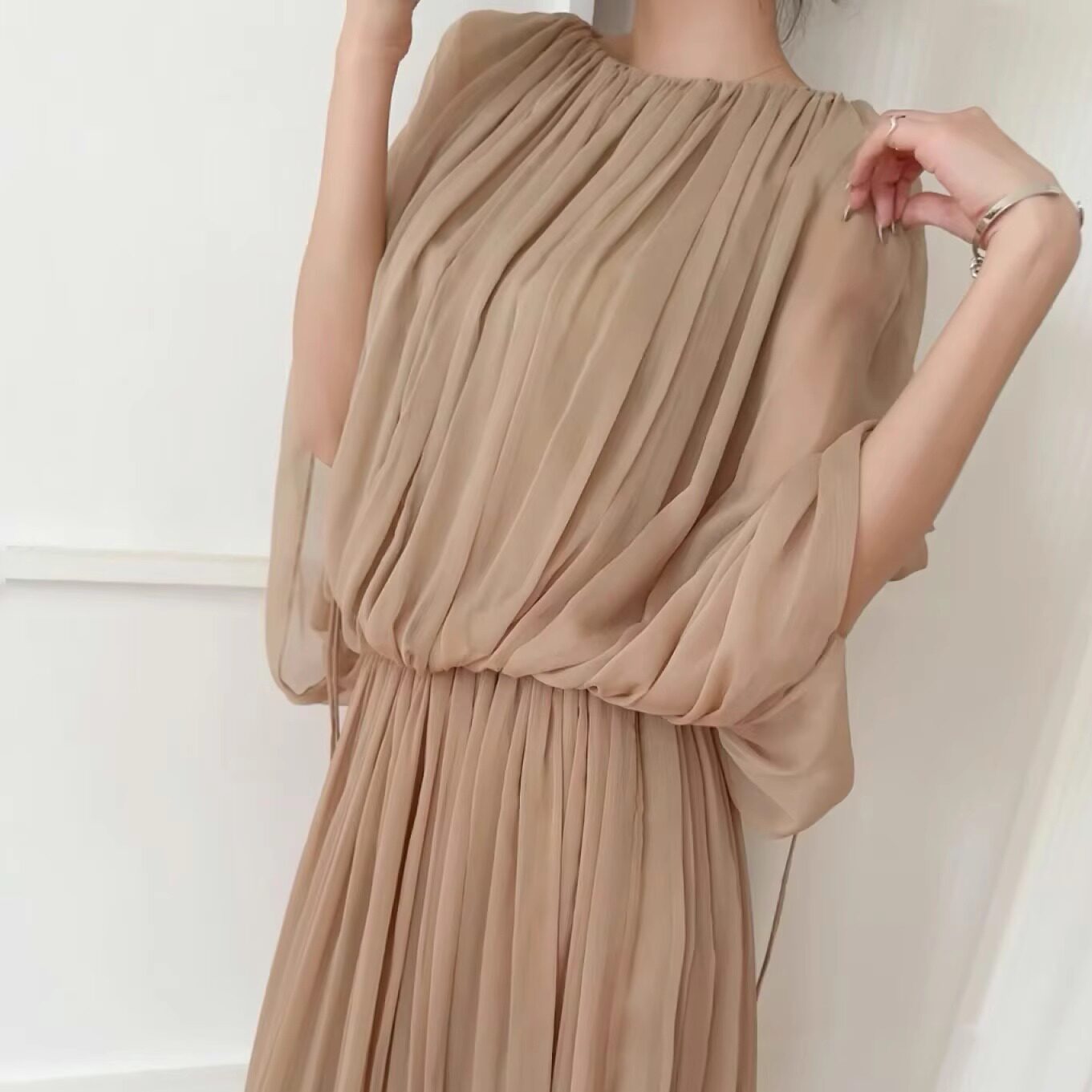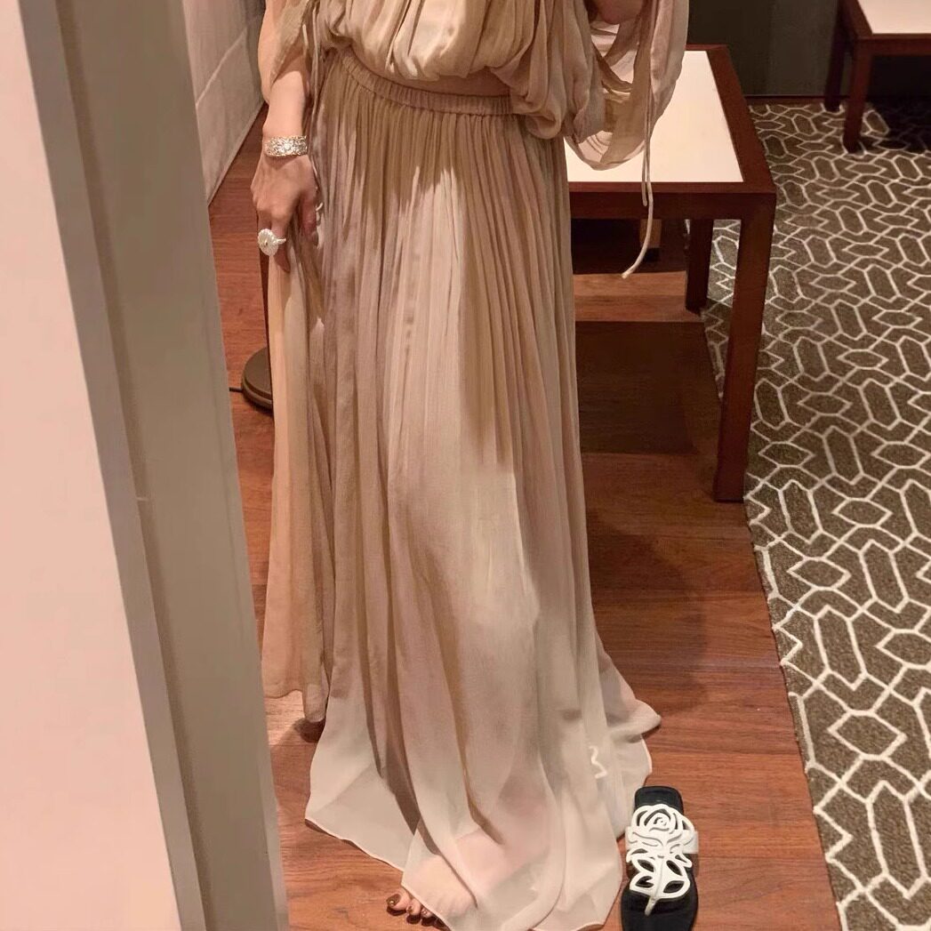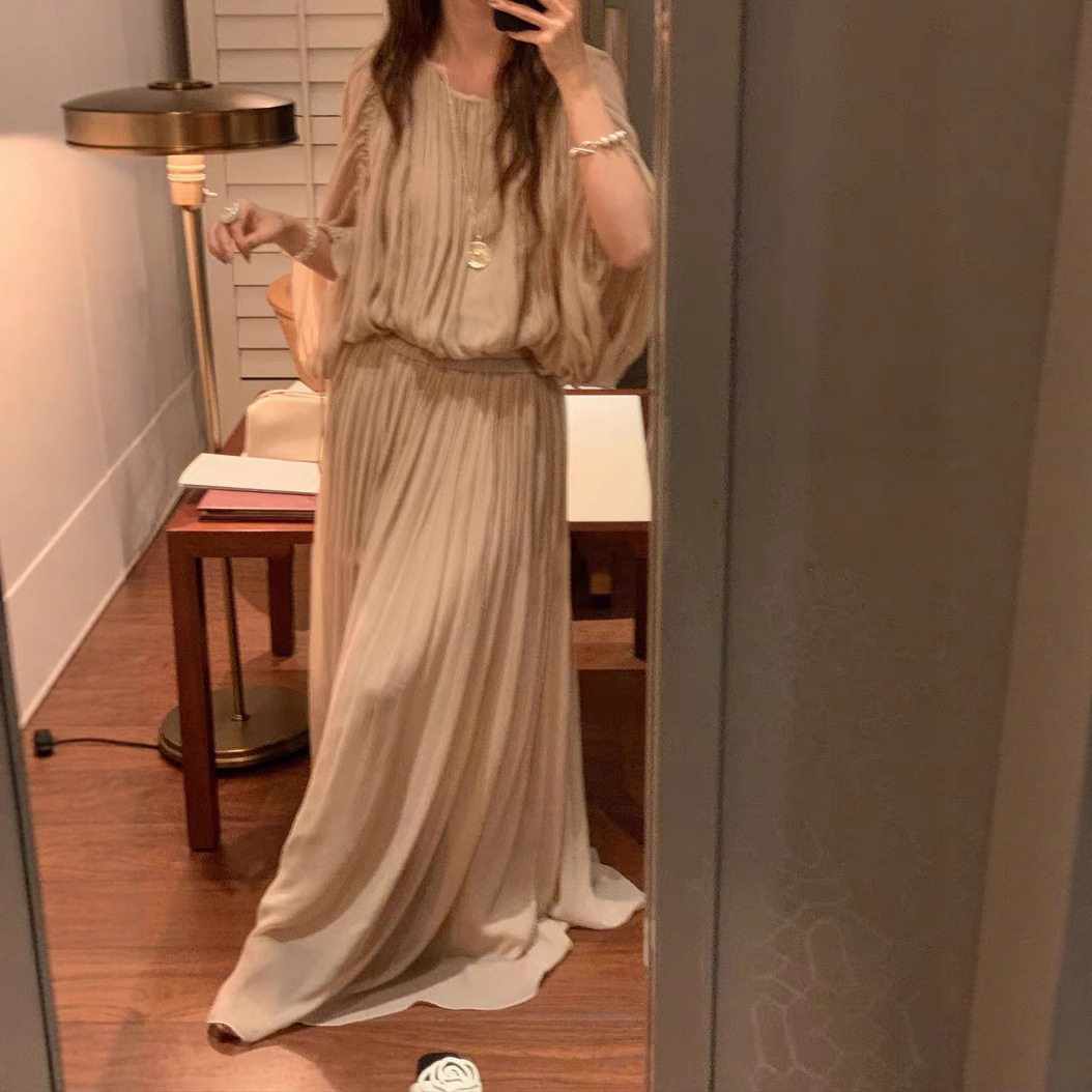25ss高级新皱褶复古蝙蝠袖 本 裸粉上衣飘逸半裙女 上海高版 花一