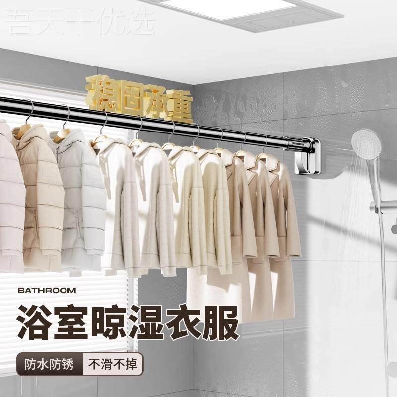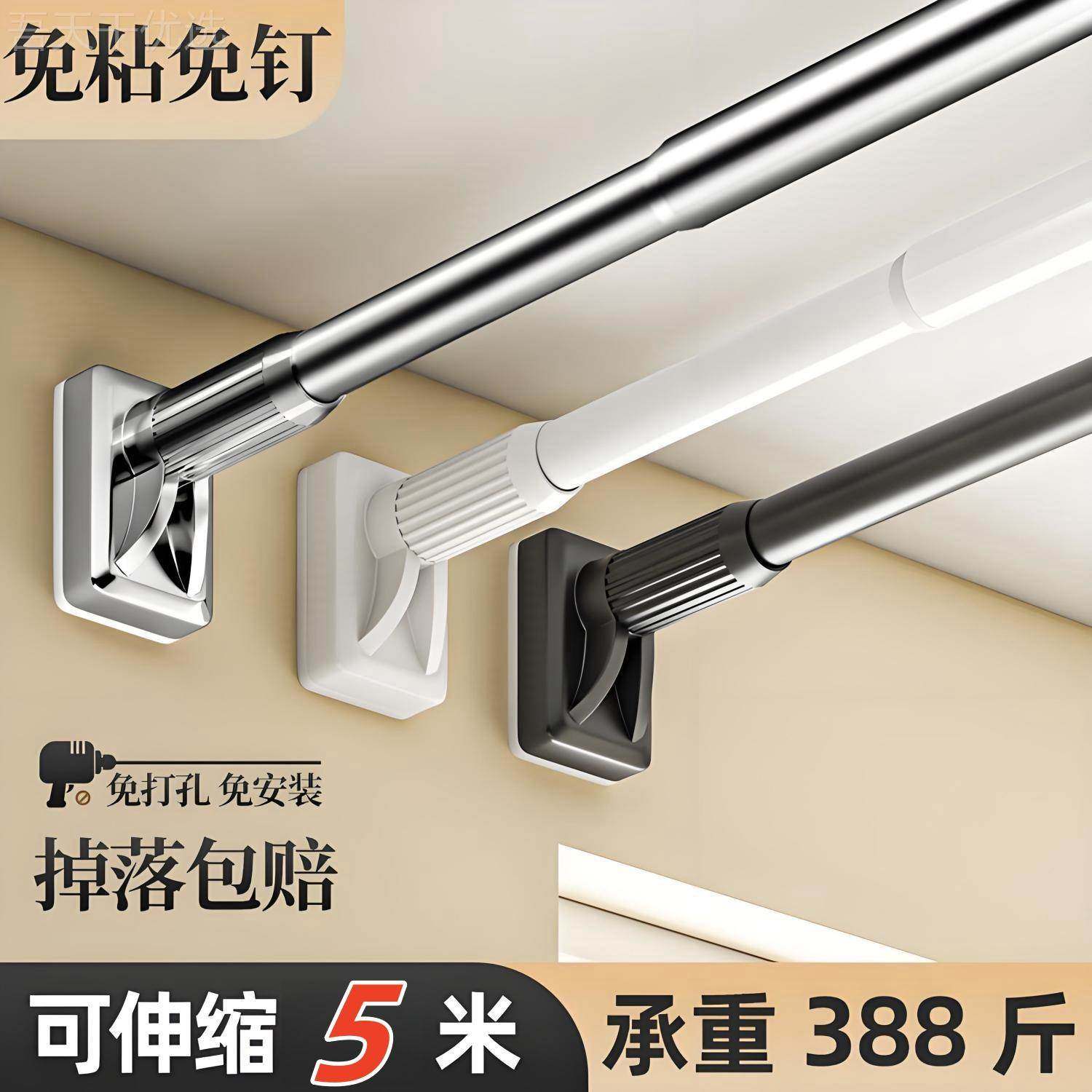 缩ROX晾衣杆打孔免钉多功能台免不锈钢阳加粗衣杆伸窗帘杆收缩浴