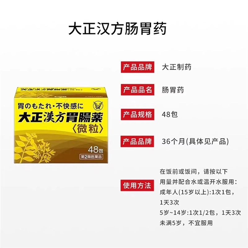日本大正汉方胃肠药48包胃药胃酸过多消化不良胃胀胃痛进口正品