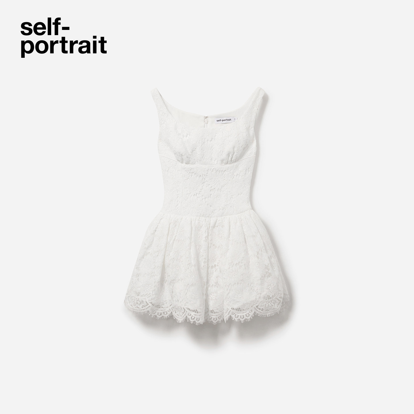 纯净白甜美气质一字领蕾丝连衣裙 2025秋冬新款 self portrait