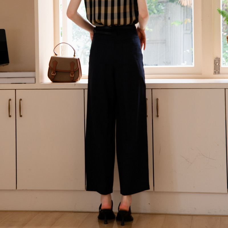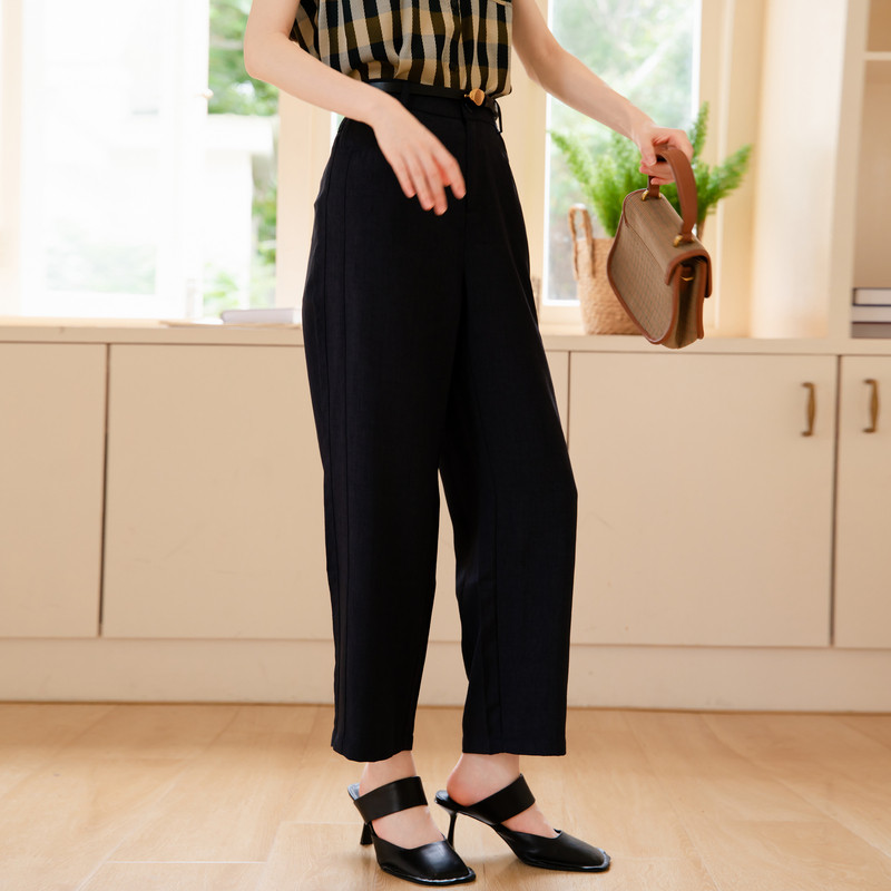 256MK6275 通勤百搭高腰宽松九分裤 谜底休闲萝卜裤 女士2025夏新款