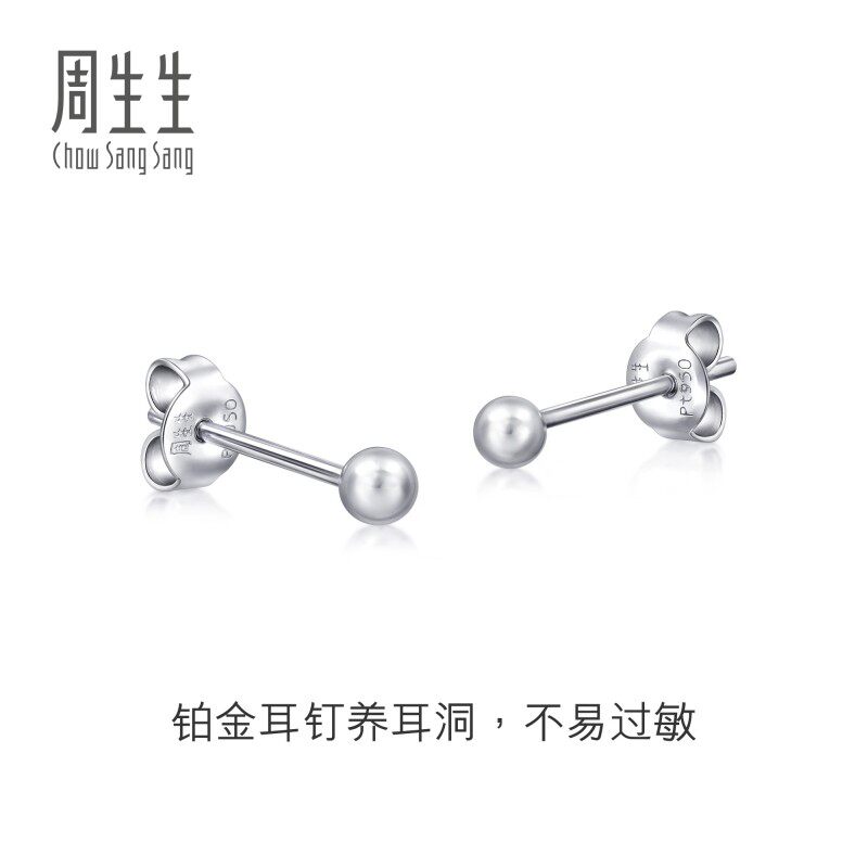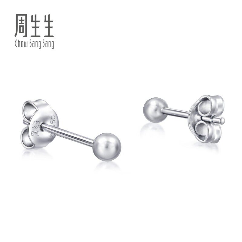送女友周生生Pt950铂金圆珠耳钉女耳饰简约饰品04971E
