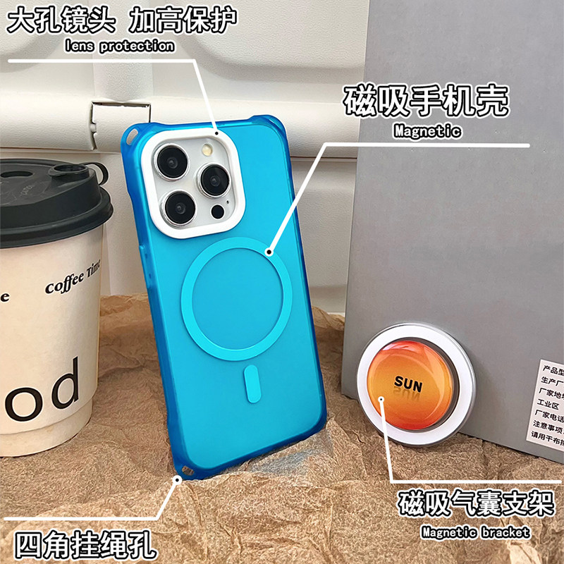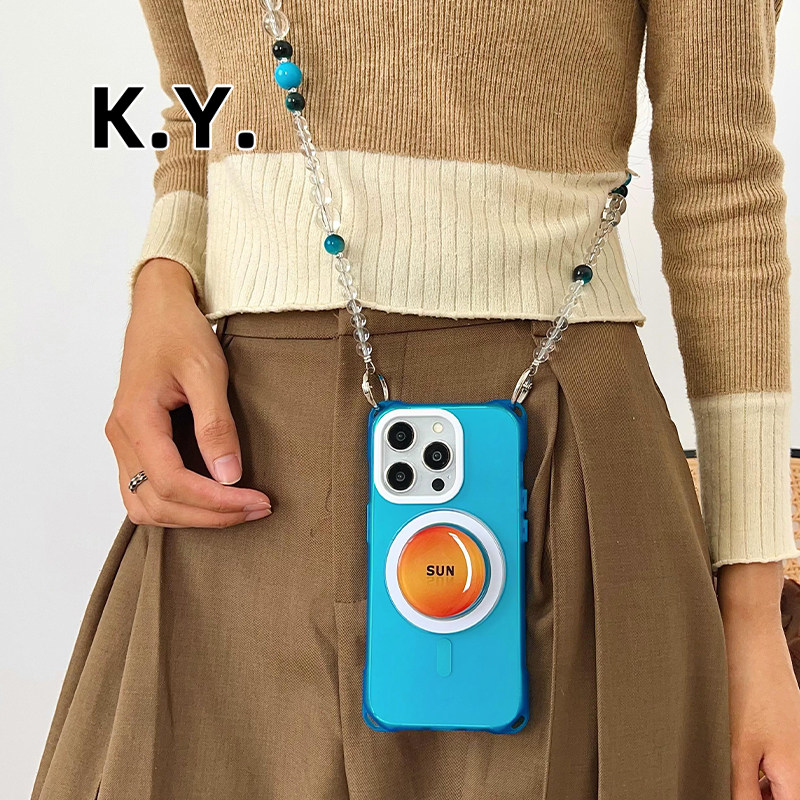 晕染太阳磁吸支架手机壳带挂绳适用于华为mate60 16手提可斜挎背带14u四角开孔vivox200s防摔findx8 70苹果15