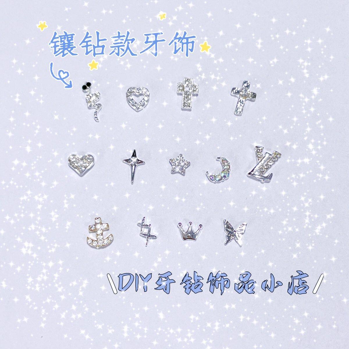 十字架 牙饰 小蛇 爱心牙钻自粘个性 饰 辣妹爆闪牙钻 牙齿装 镶钻款