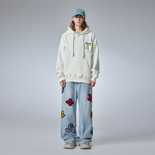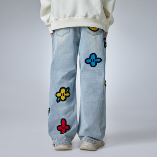 GUUKA&Agaho联名美式 子直筒长裤 牛仔裤 情侣刺绣裤 宽松 男 小何同款