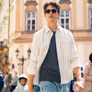 MrBu布先生长绒棉v领白色长袖 KT15650 t恤男休闲V领男T内搭打底衫