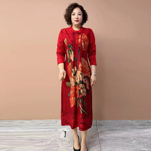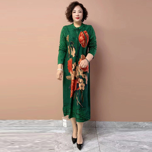 新中式 国风盘扣中老年妈妈洋气减龄连衣裙 改良旗袍裙2025秋冬新款
