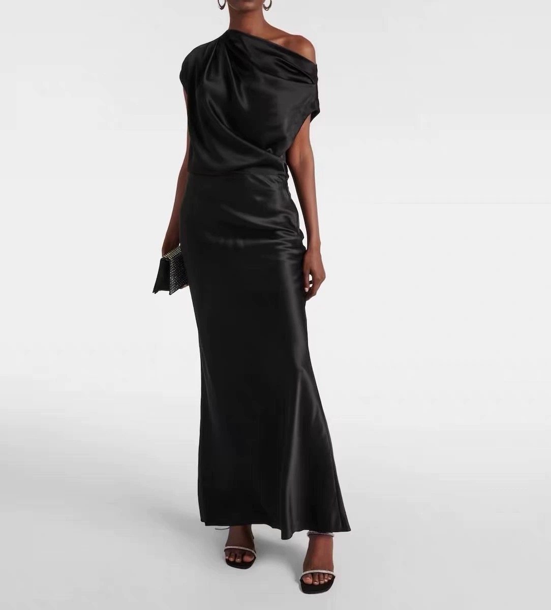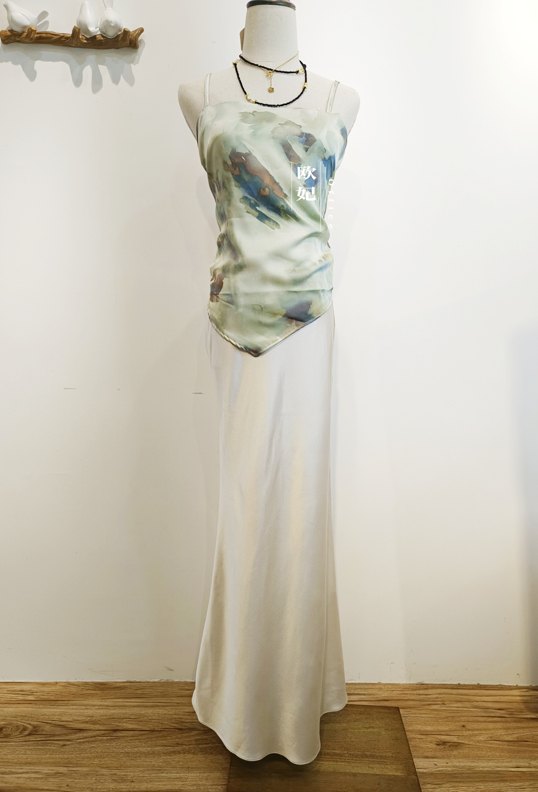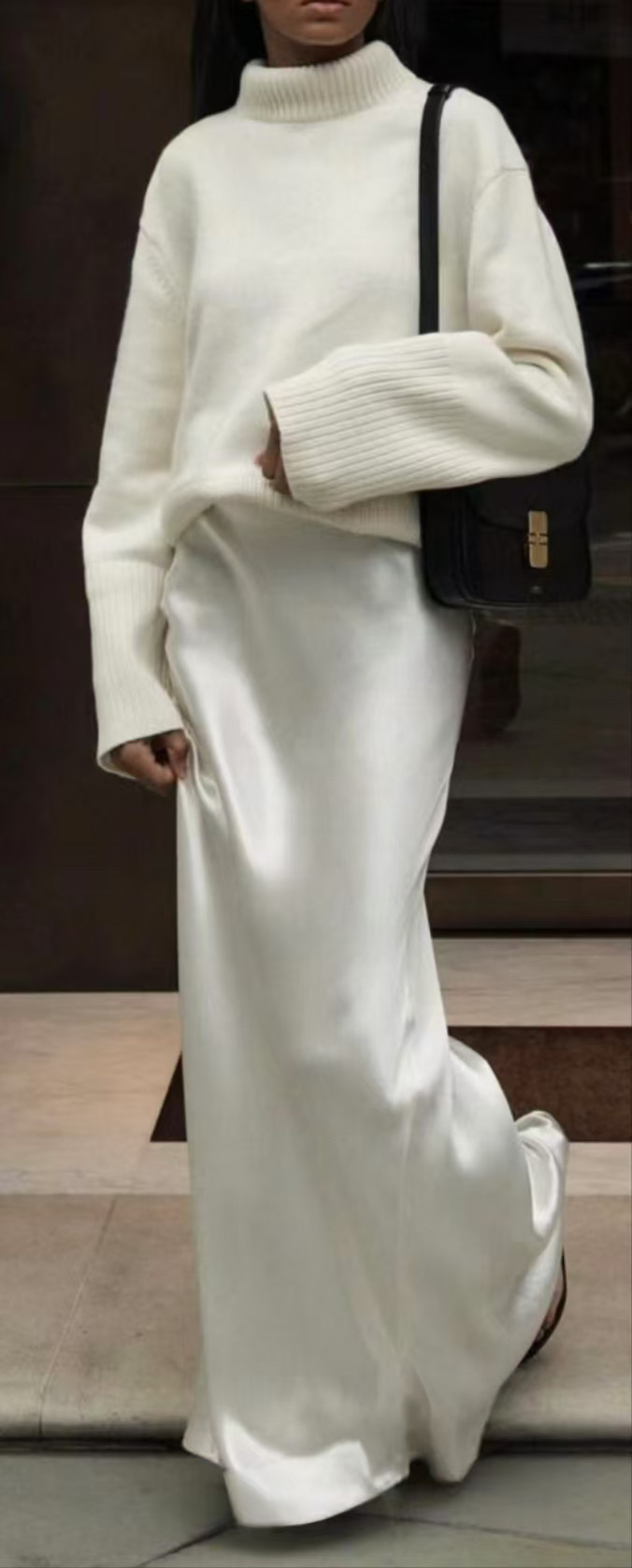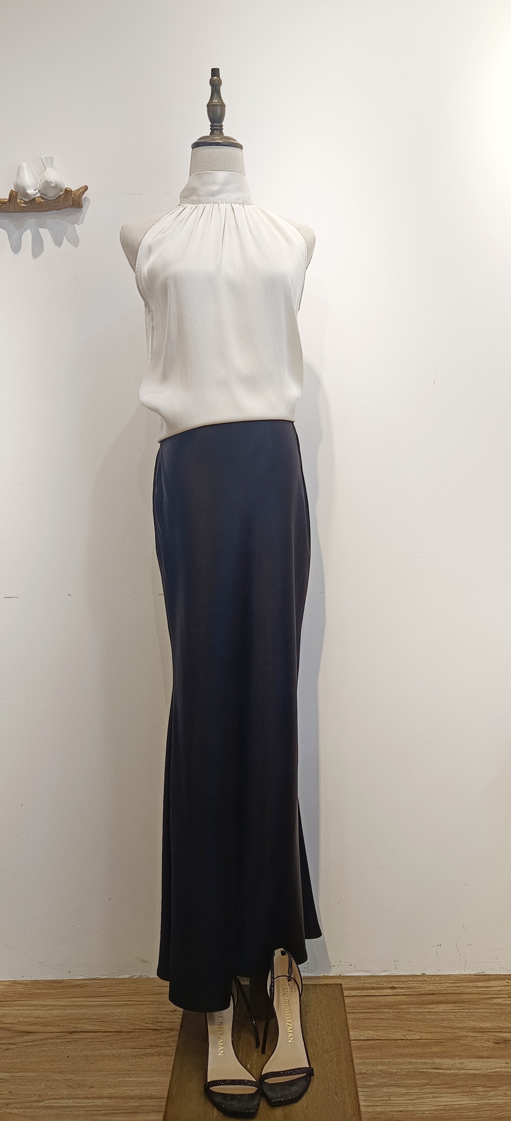 手缝原创6A级40姆米重磅100%桑蚕丝silk白月光色斜裁鱼尾半身长裙