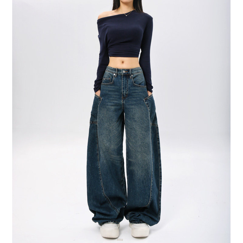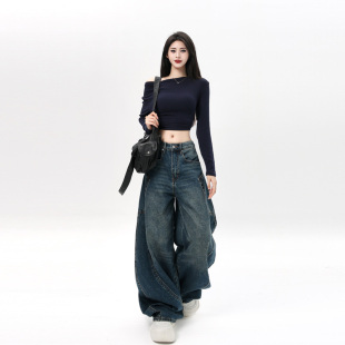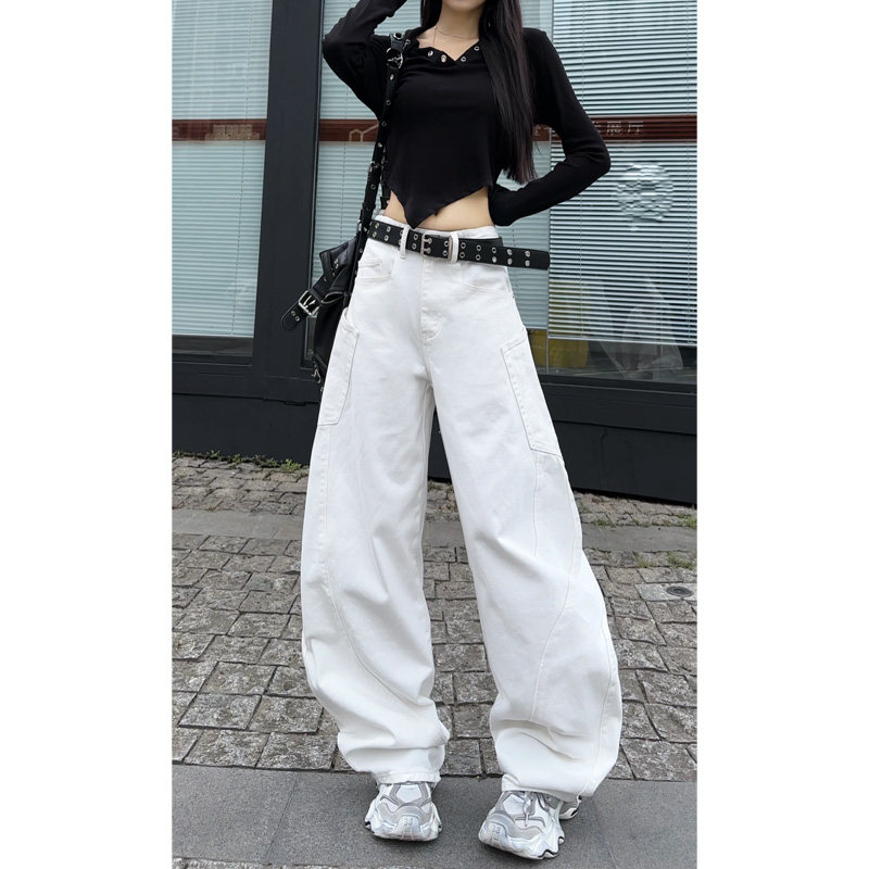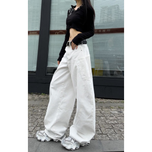 遮肉显瘦休闲长裤 白色宽松阔腿牛仔裤 百搭弯刀裤 新款 女2026春季