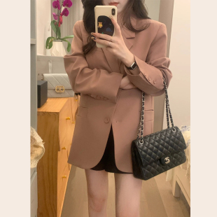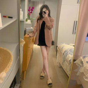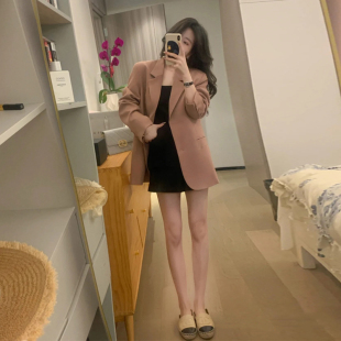 小个子宽松休闲气质西服 高级设计感韩版 玫瑰粉色西装 外套女春秋装