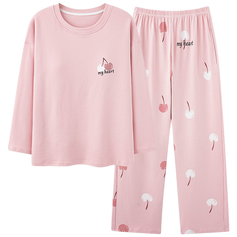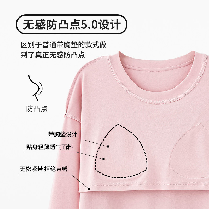 全棉套装 一体式 女士长袖 浪莎带胸垫睡衣女春秋纯棉家居服2026新款