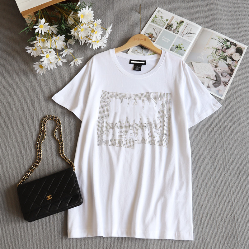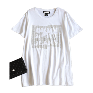 T恤 小奢精品 闪亮字母烫钻休闲短袖 成人女装 飘逸丝滑媛 自留强推
