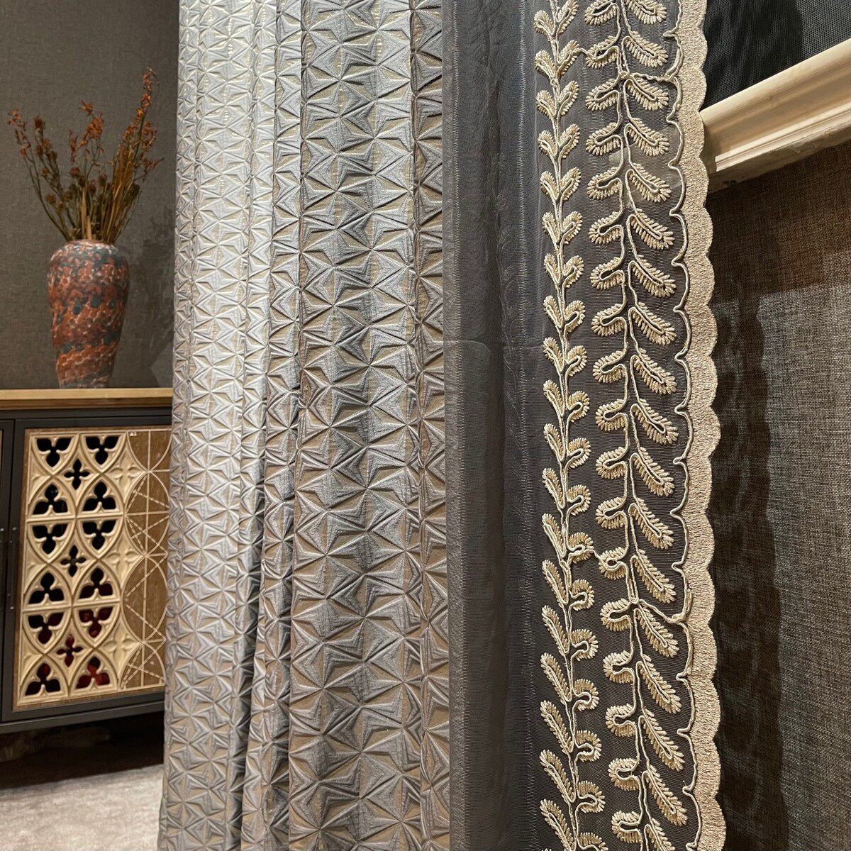 灰色浮雕2021新款 简约遮光窗帘 流行窗帘客厅卧室大男孩房轻奢时尚