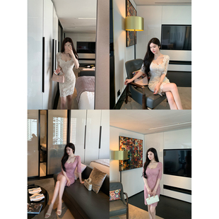优雅气质修身 THE 法式 娇娇感 中裙包臀蕾丝连衣裙女 SWAN司凰轻奢