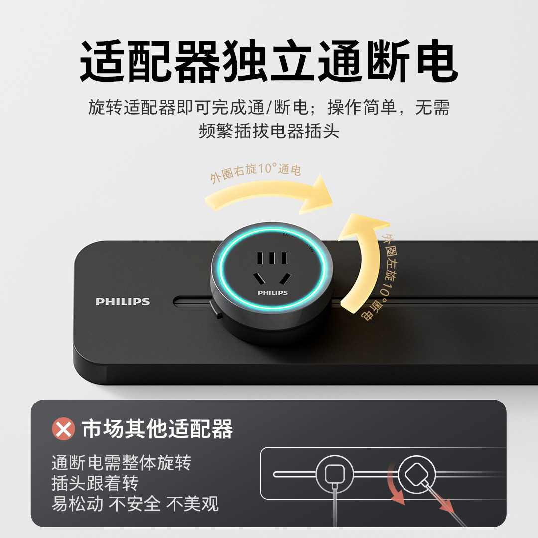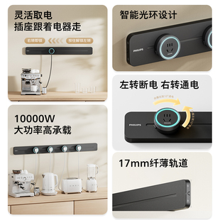 电力滑动导轨电源排插座接线板 飞利浦可移动轨道插座明装 15%