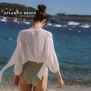 泳衣外搭开衫 宽松沙滩外套度假防晒衣比基尼罩衫 竹节棉衬衣式 新款